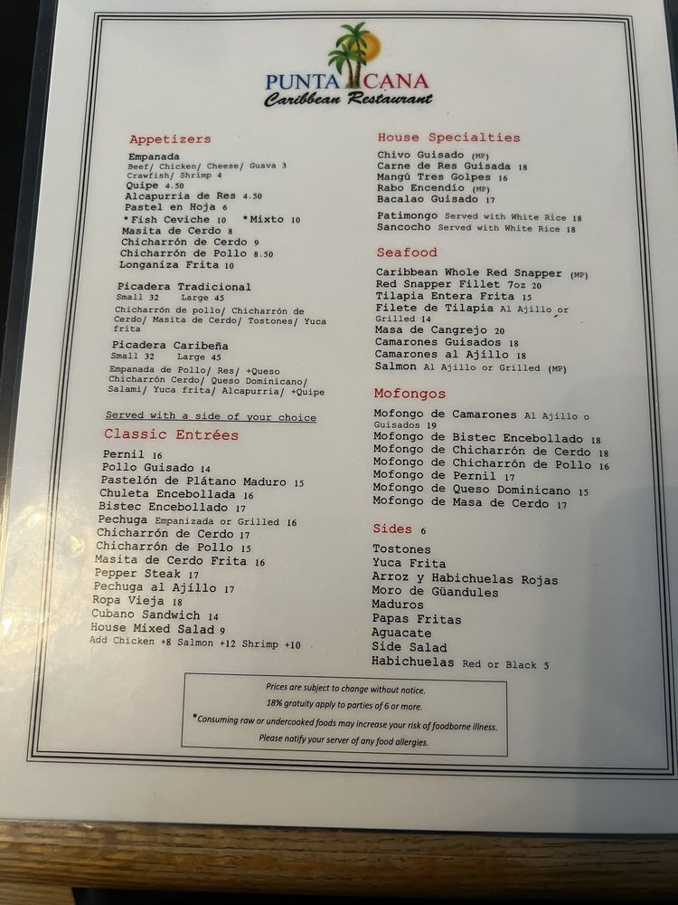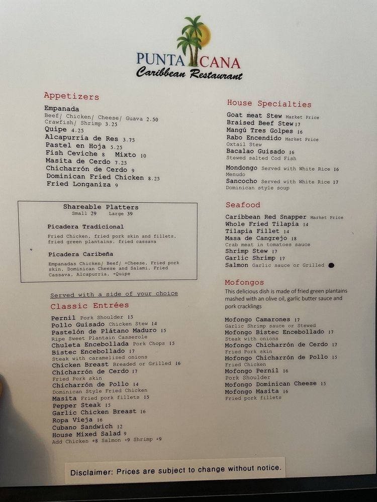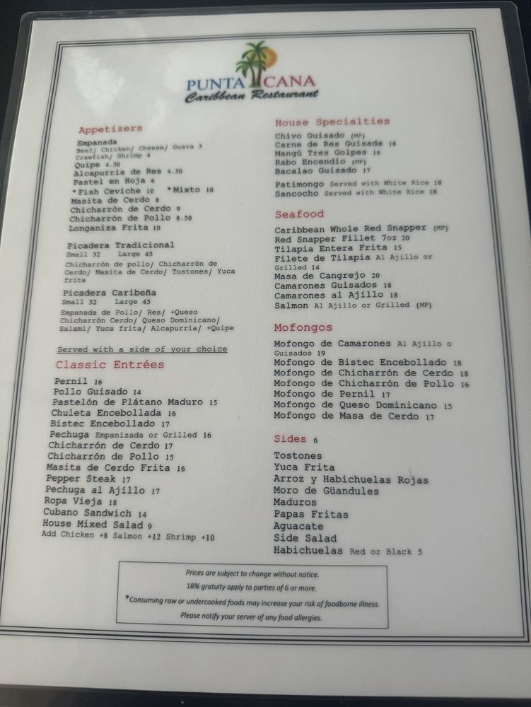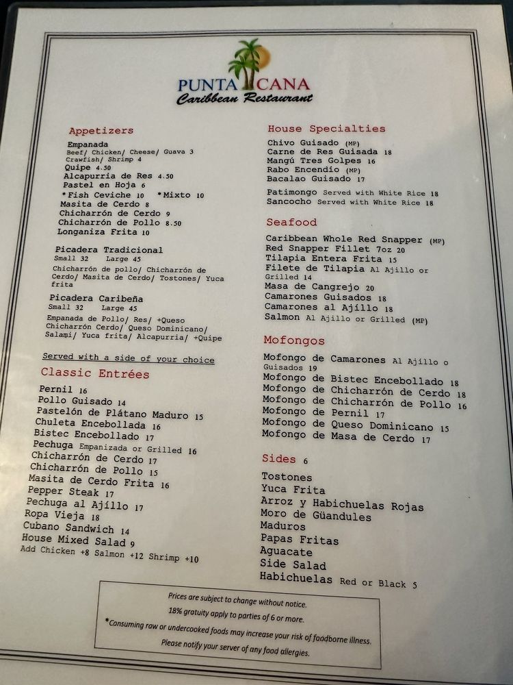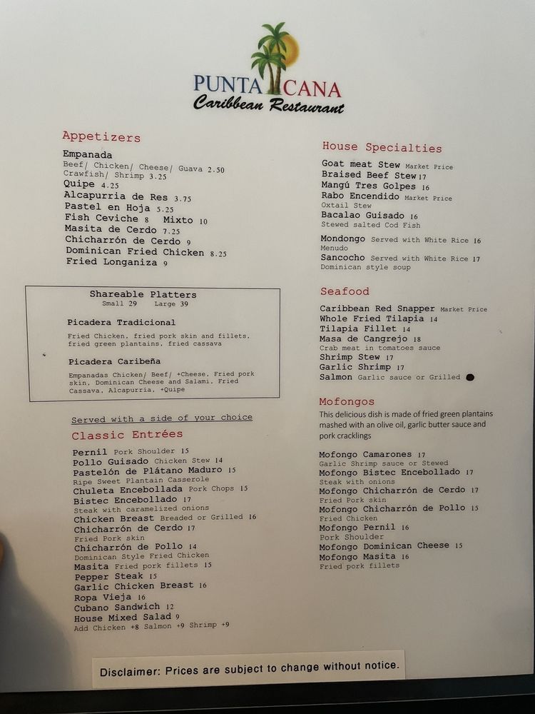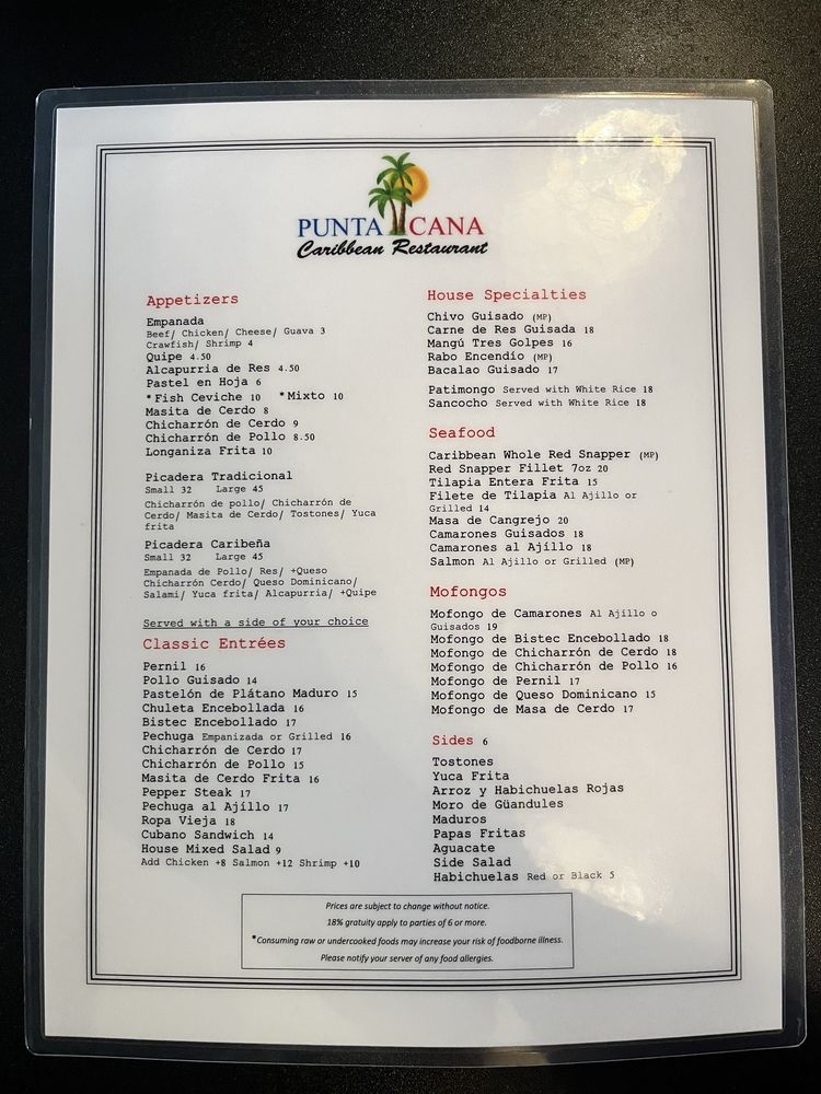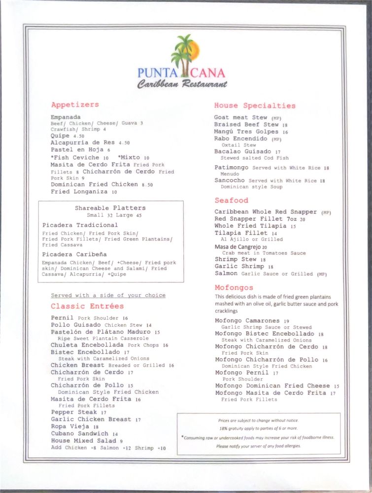 Punta Cana Caribbean Restaurant Menu (Update 2025)